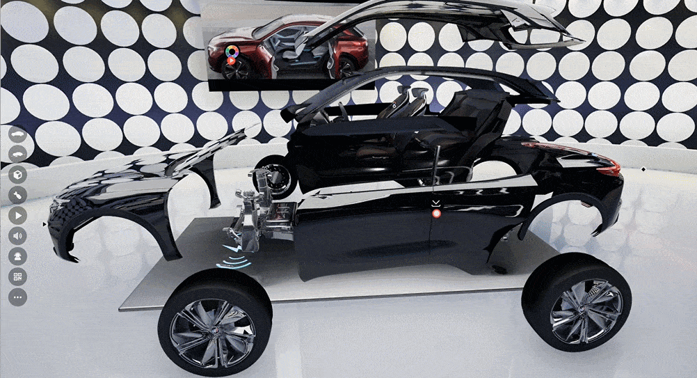 不僅如此,云展動力順應“互聯網+”的優點,從全行業全產業鏈的覆蓋著手,提出了“元宇宙獲客會客廳”,利用數字孿生技術完成云展廳的搭建后,觀眾只需要在手機上點開企業云展系統即可720度逛企業、查看產品,企業也能夠實現多個客戶同逛企業、實時講解、在線答疑。換句話來說,在這個云展廳中,企業能實現獲客、留存、轉化、客戶管理的數字營銷閉環,從而高效解決獲客難題。